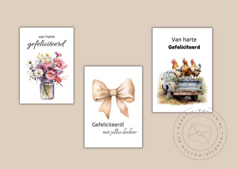 Bij kaartje-posten.nl vind je een breed assortiment aan kaarten voor elke gelegenheid. Of het nu gaat om verjaardagen, bruiloften, of zomaar een lief berichtje, u bent bij ons aan het juiste adres.